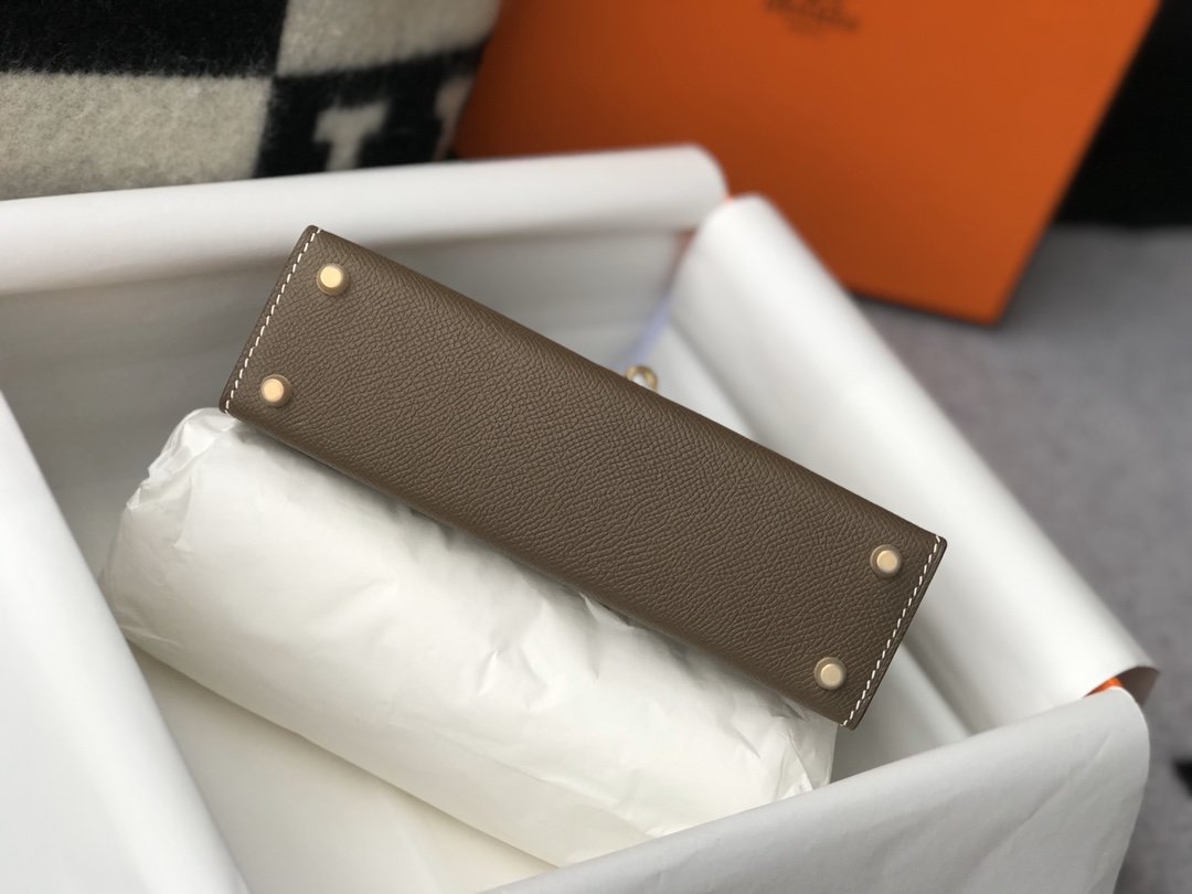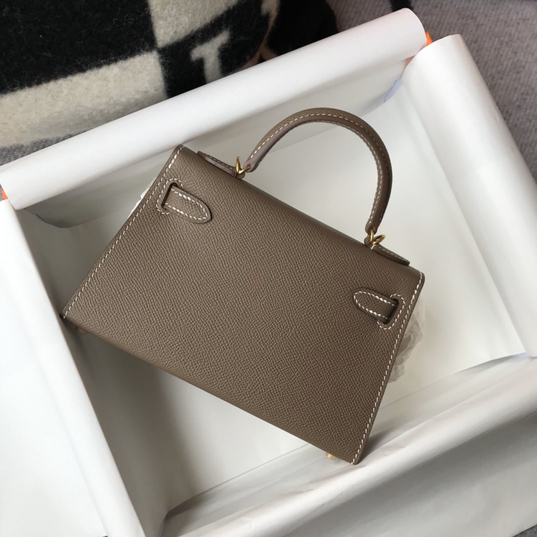 HRMS Greige Togo Brown With Gold Toned Hardware Bag For Women, Handbags, Shoulder Bags 7.5in/19cm