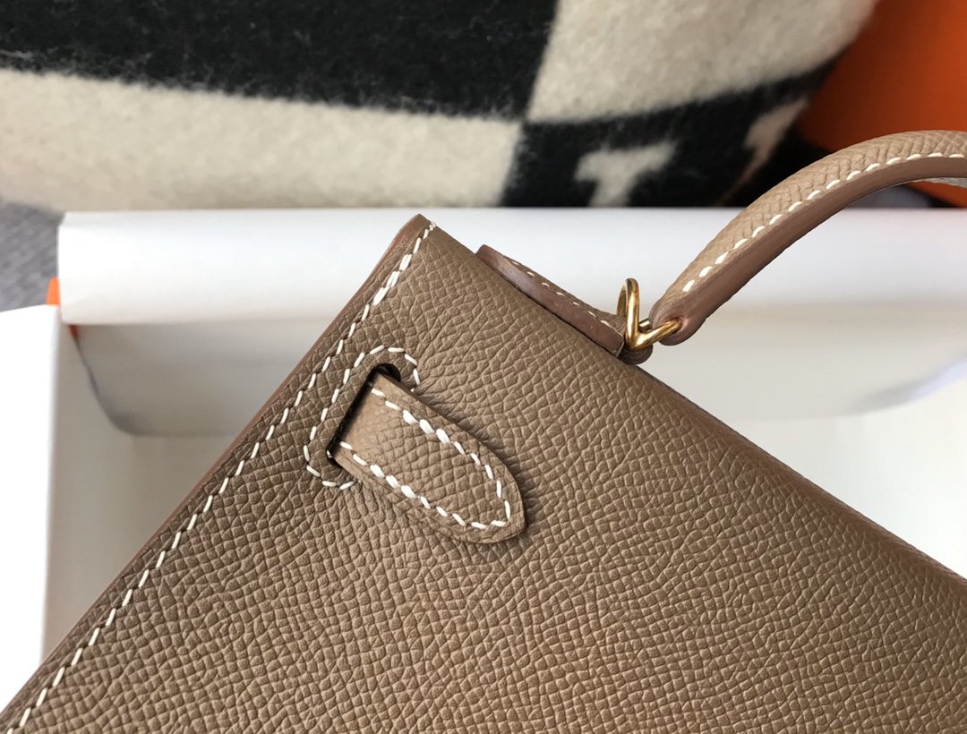 HM Greige Togo Brown With Gold Toned Hardware Bag For Womtlm, Handbags, Shoulder Bags 7.5in/19cm