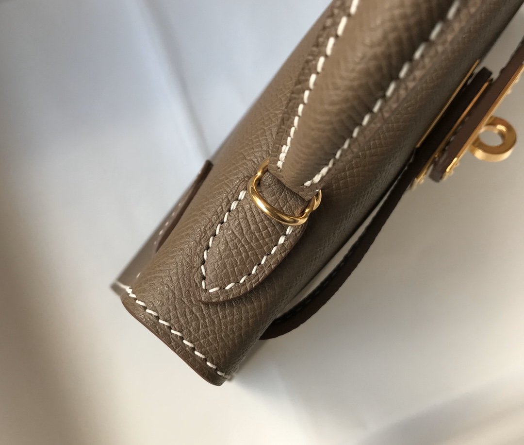 HRMS Greige Togo Brown With Gold Toned Hardware Bag For Womtlm, Handbags, Shoulder Bags 7.5in/19cm