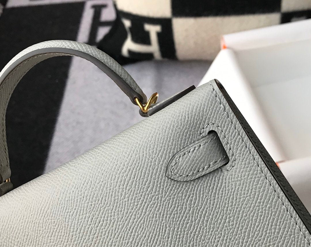 HM Kelly 19 Grey Glacier Epsom With Gold Toned Hardware Bag For Women, Handbags, Shoulder Bags 7.5in/19cm