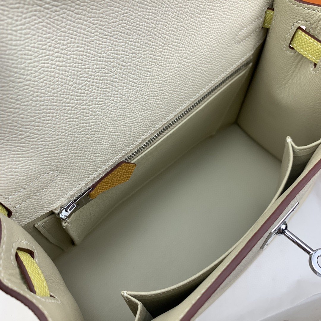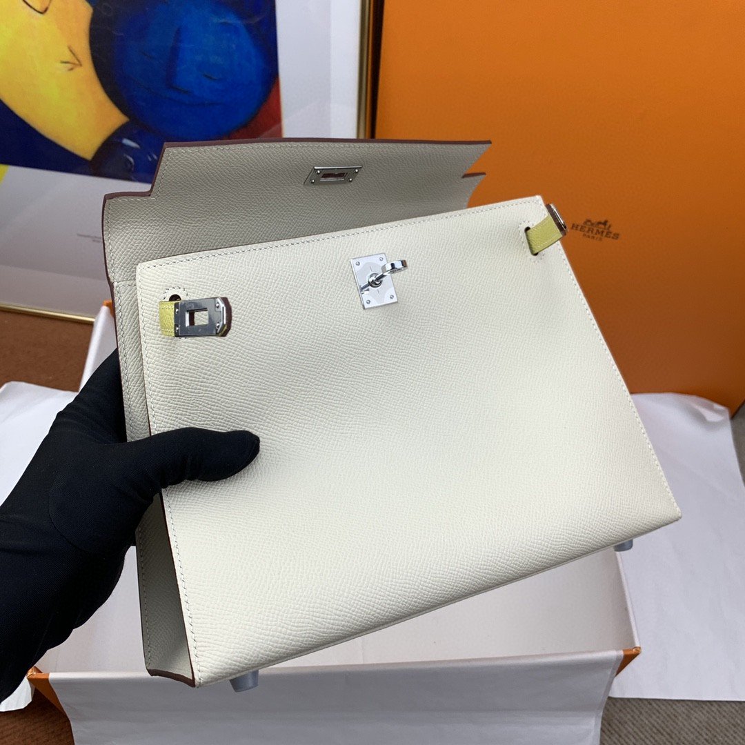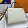 HRMS Kelly 25 Sellier Epsom Craie/Yellow Bag For Women, Handbags, Shoulder Bags 10in/25cm