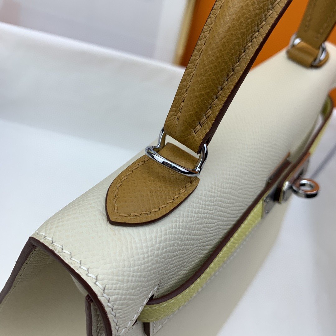 HM Kelly 25 Sellier Epsom Craie/Yellow Bag For Women, Handbags, Shoulder Bags 10in/25cm