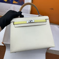 HM Kelly 25 Sellier Epsom Craie/Yellow Bag For Womtlm, Handbags, Shoulder Bags 10in/25cm