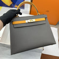 HM Kelly 28 Sellier Epsom Dark Grey/Yellow Bag For Women, Handbags, Shoulder Bags 11in/28cm