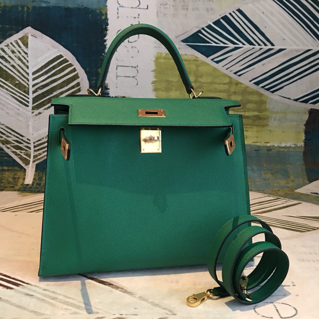 HM Kelly 28 Vert Jade Gretlm Bag For Womtlm, Handbags, Shoulder Bags 11in/28cm