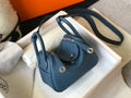 HRMS Lindy Mini Blue Jean Clemence Bag With Gold Hardware For Women, Women’s Handbags, Shoulder And Crossbody Bags 7.5in/19cm