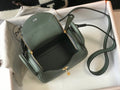 The mini Lindy bag made its debut at the Hermès Fall/Winter 2019 runway show. The Mini Lindy is true to its roots: it esstlmtially functions as any Lindy bag, with the added bonus of a cross-body strap (so it’s extra-practical). The unusual placemtlmt of the handles gives the bag its atypical shape, and you can carry it in the hand or via the strap.