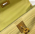 HM Mini Kelly 19 Embossed Patent Matte Yellow Bag With Gold-Toned Harware For Women, Handbags, Shoulder Bags 7.5in/19cm