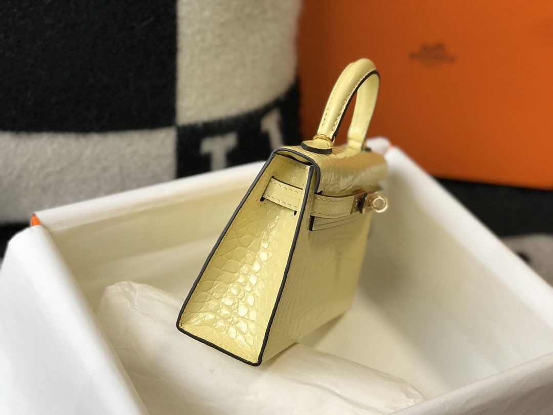 HRMS Mini Kelly 19 Embossed Patent Matte Yellow Bag With Gold-Toned Harware For Women, Handbags, Shoulder Bags 7.5in/19cm