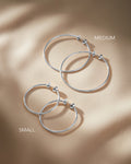 The Icon Hoops are re-engineered to be more functional and elevated than ever. Consider these your wear-with-everything piece; a classic hoop shape that never goes out of style. The 360 degree full circle design means the earrings won't catch your hair. The flexible stainless steel material is water-durable and one third of an inch thicker than the previous design. An easy-to-use tension closure to ensure the Icon Hoops will stay put and you won't have to search for an earring backing. Finished in high-polish rhodium. For a smaller version of these, see the Icon Hoops - Small.