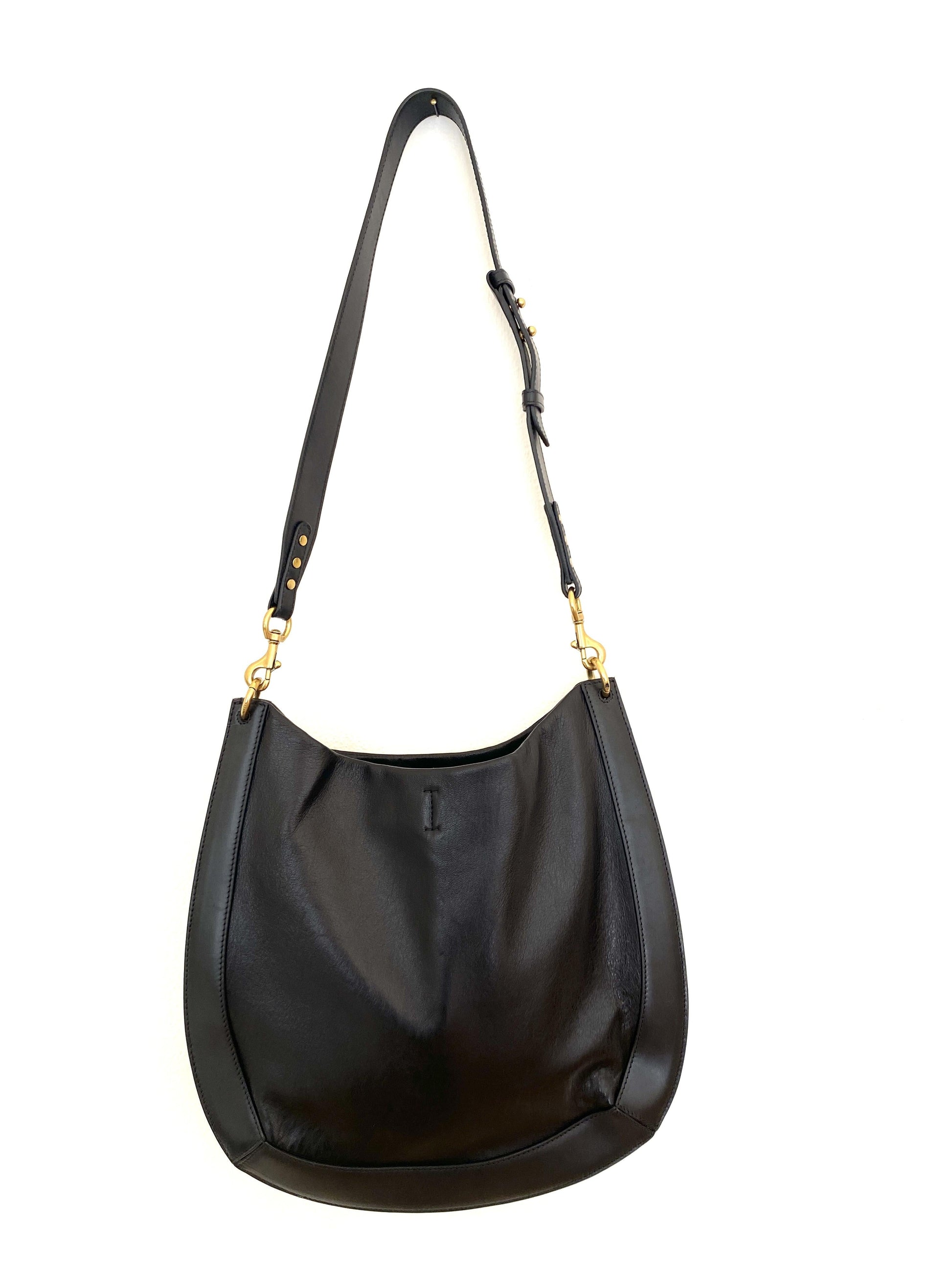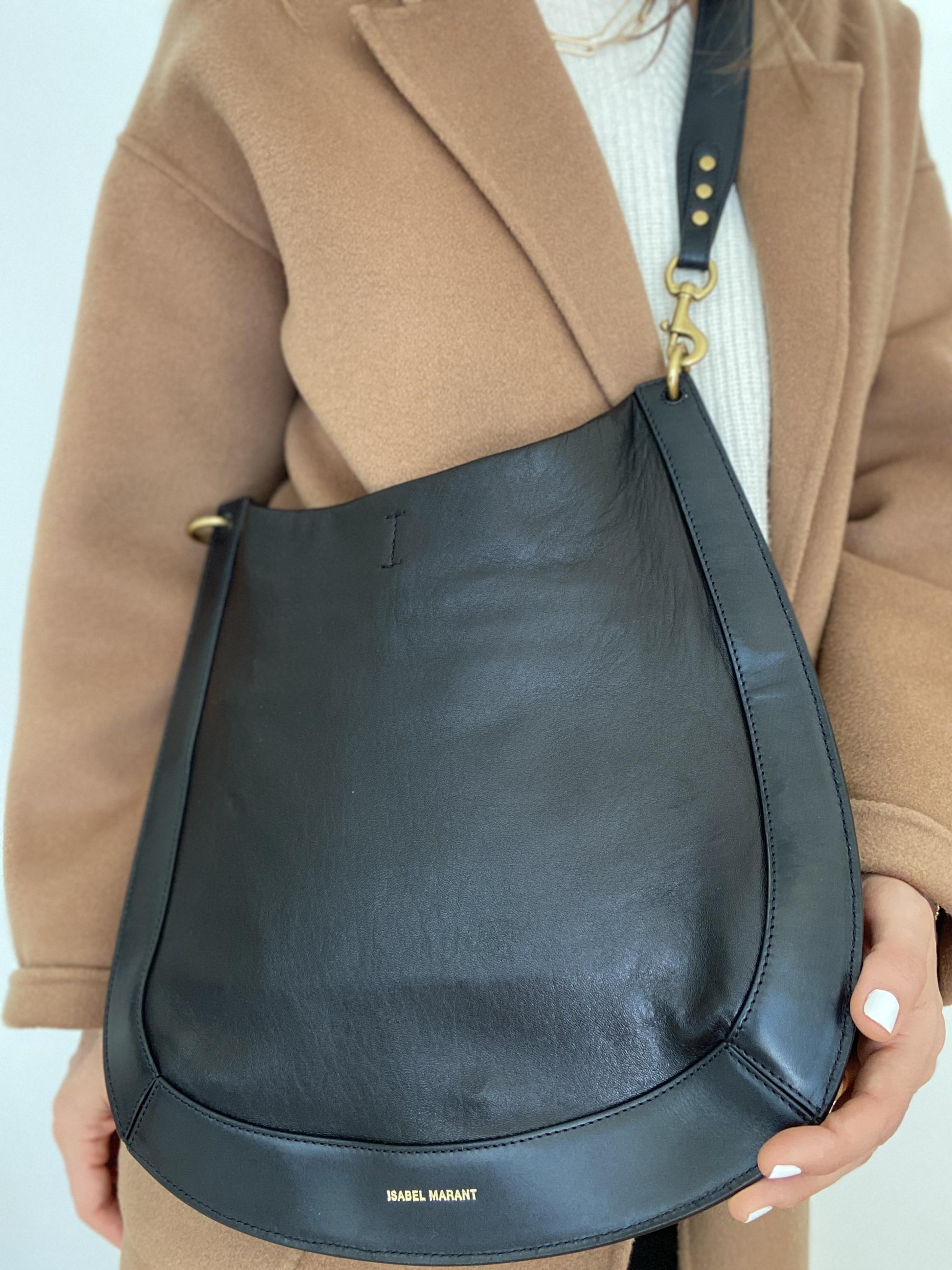 We love the simplicity of this black Isabel Marant Moksan leather shoulder bag. The leather is butter soft and the discreet logo print with the golden brass hardware at the straps make this signature Isabel Marant look and everyday classic. Striking the balance between form and function, this minimalist Isabel Marant shoulder bag has achieved our idea of perfection.