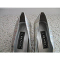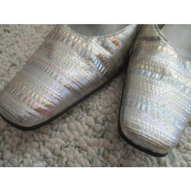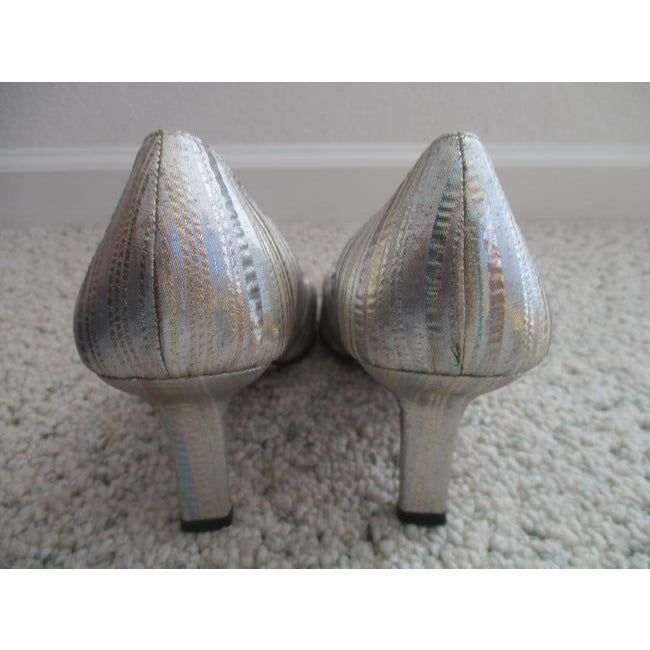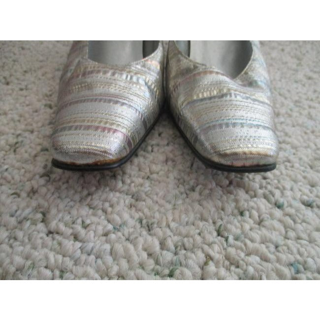 J Renee Silver Vintage Metallic Fabric Subtle Pastel Striped Heels Pumps Size Us
