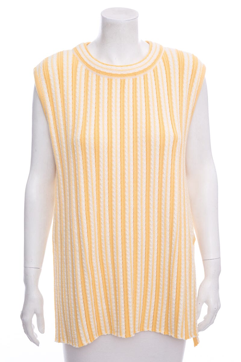 Jil Sander Yellow & White Stripe Knit Sleeveless Sweater SZ XL