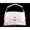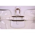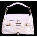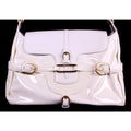 Jimmy Choo pale yellow glossy leather shoulder bag with gold hardware & belted sides