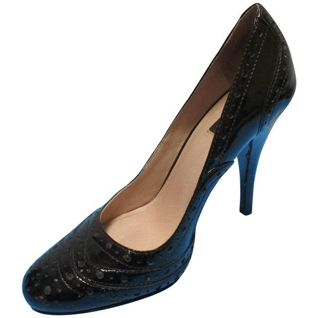 Classic black patent with signature surface almond toe pumps. 4-1/2 inch covered heels. Logo padded insoles. All measurements are approximate.
