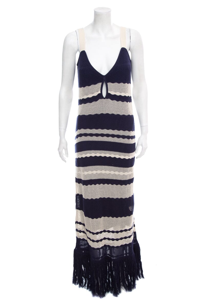 Johanna Ortiz Navy & Cream Stripe Knit Sleeveless Maxi Dress SZ L