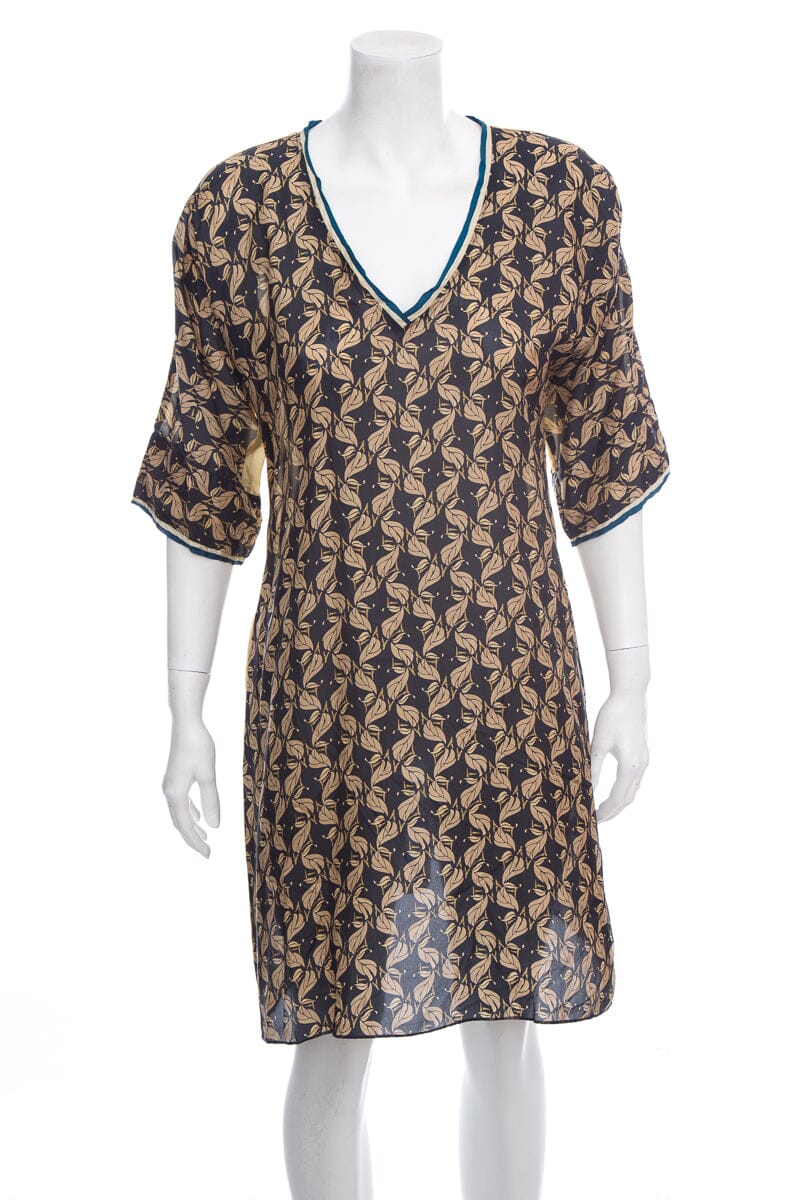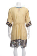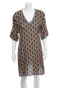 Johnny Was Gold/Black Printed Silk Short Sleeve Dress. This item is in good condition.