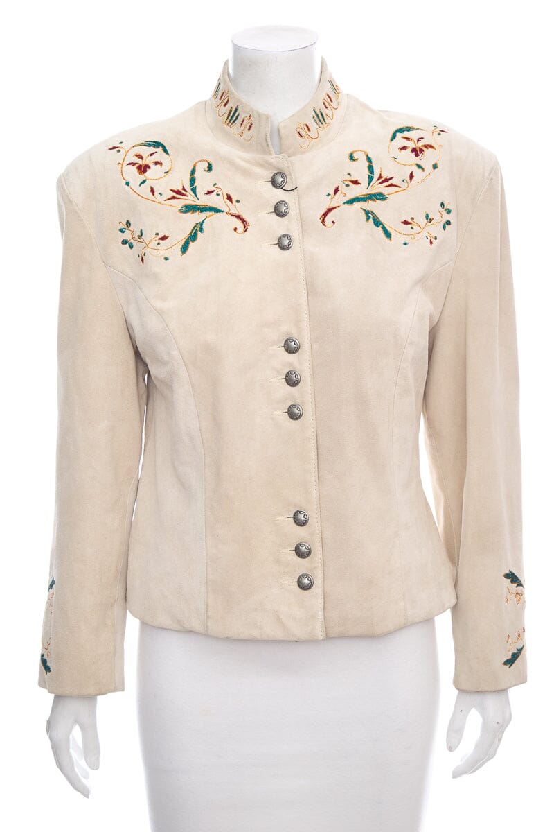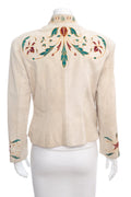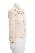 Josie Fuis Beige Suede Embroidered Jacket SZ S