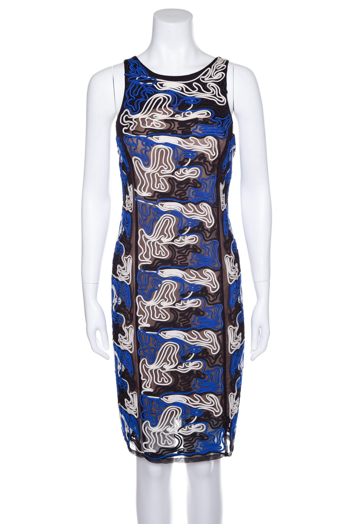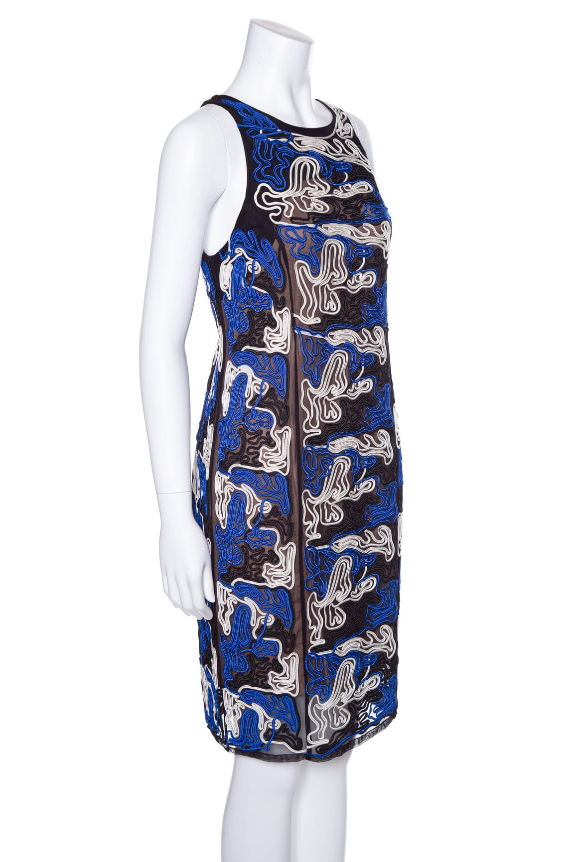 Julien David Blue and Black Ribbon Design Sleeveless Dress SZ M NWT