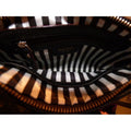 The purse is in excellent condition! The interior is a black and white striped design with lots of pockets. The leather is in very good condition and the piping and strap of the purse are in excellent condition!
