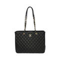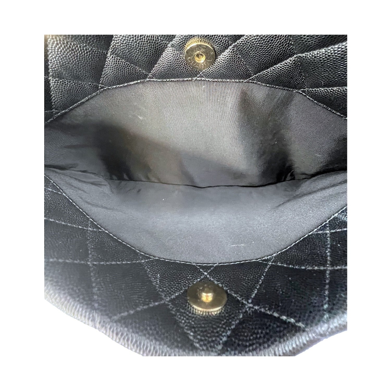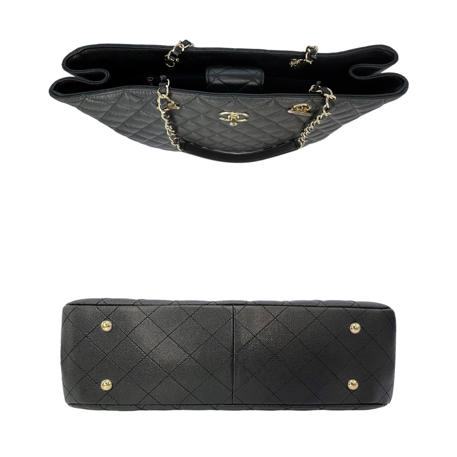 Chanel bags Classic Timeless Tote was made in Italy and it is finely crafted of a black quilted caviar leather exterior with gold-tone hardware features. It has dual leather and chain-link shoulder straps. It has a slip pocket on the backside with a magnetic closure. It has a locking push through closure and it opens up to a black grosgrain interior with 2 slip pockets and a zipper pocket. This classic, timeless tote is perfect for everyday use and it is also certified by Entrupy!