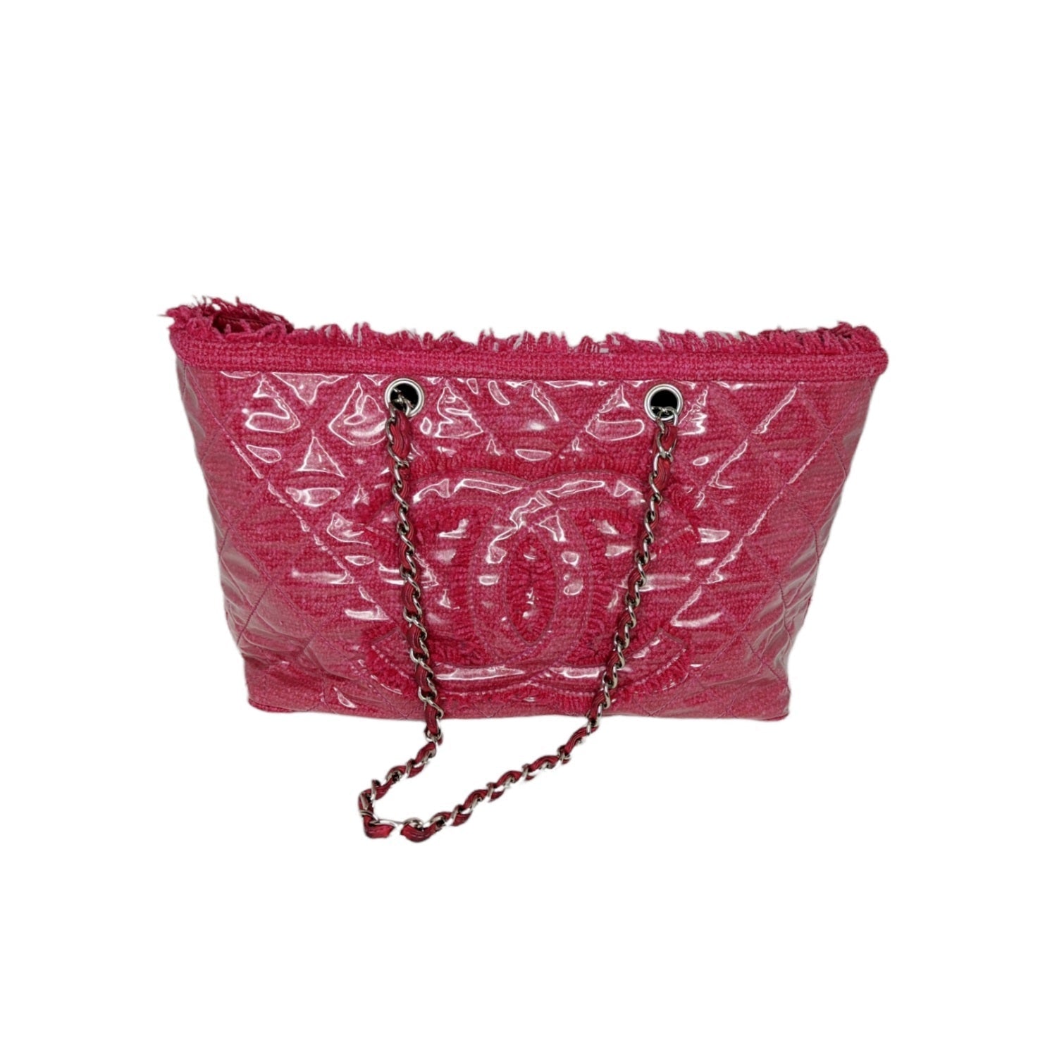 Chanel Vinyl Quilted Funny Tweed Tote Pink
