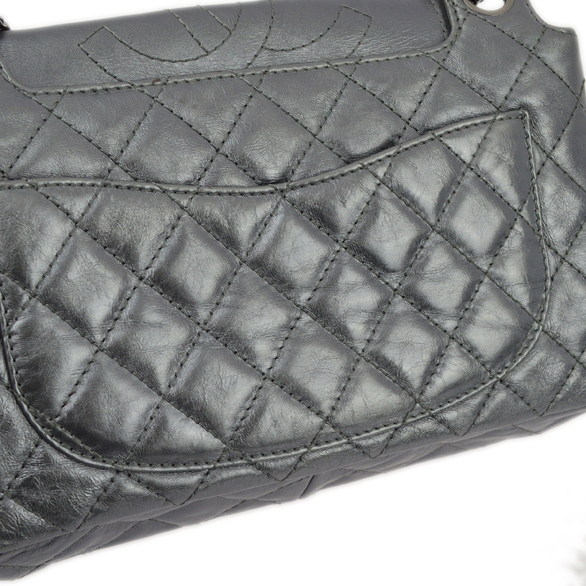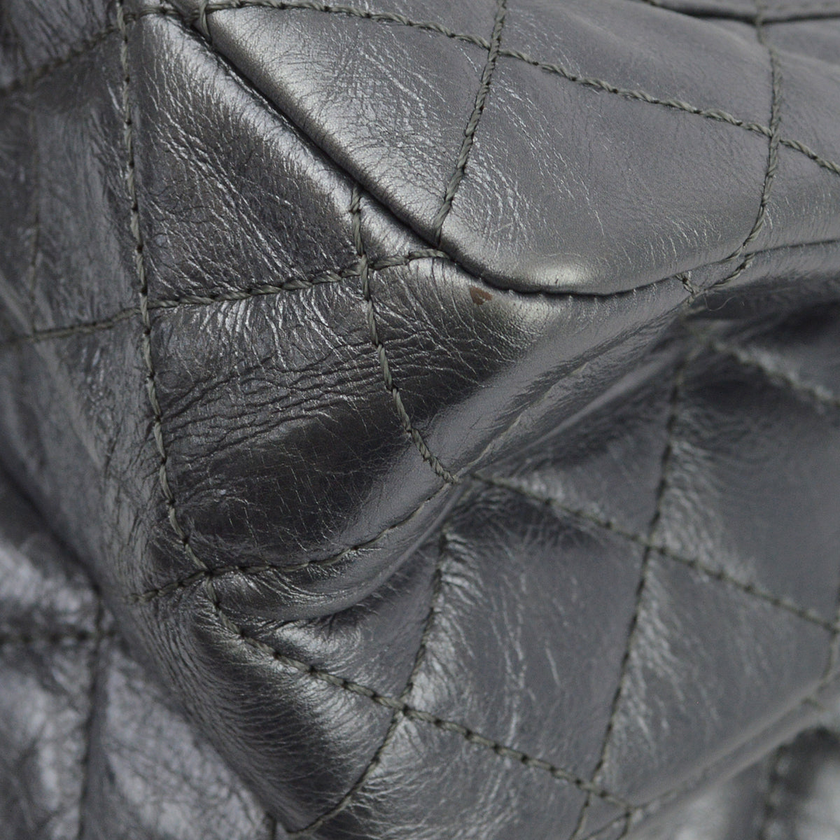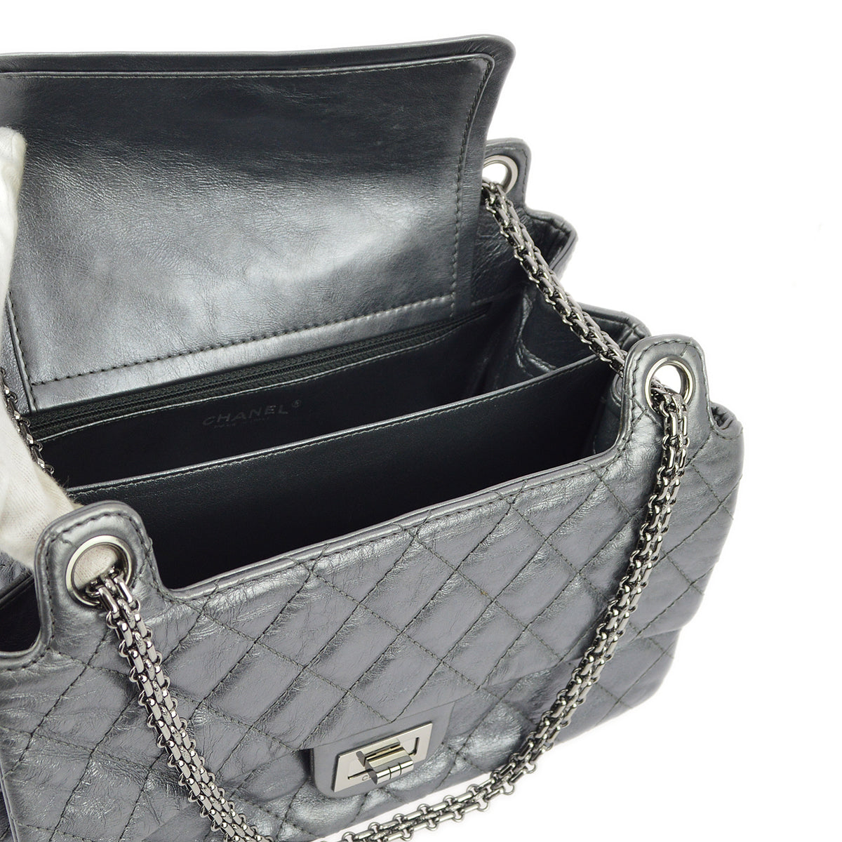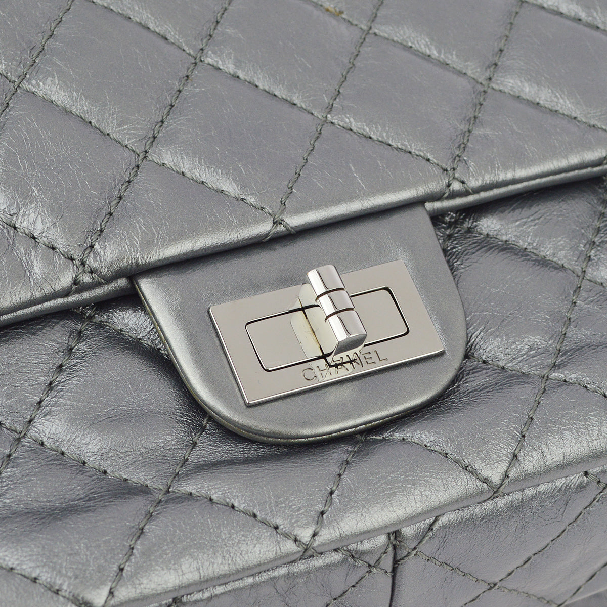 Chanel Silver Lambskin Mademoiselle Lock Shoulder Bag