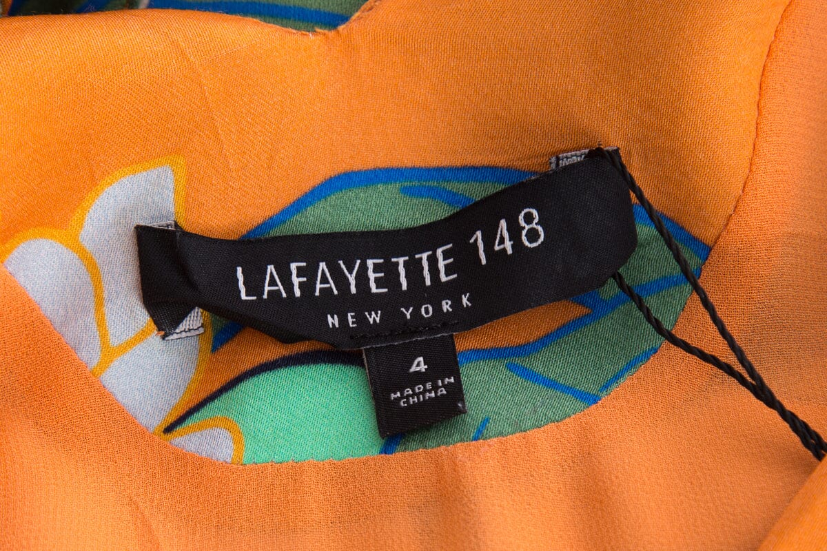Lafayette 148 Orange Floral Print Dress SZ 4