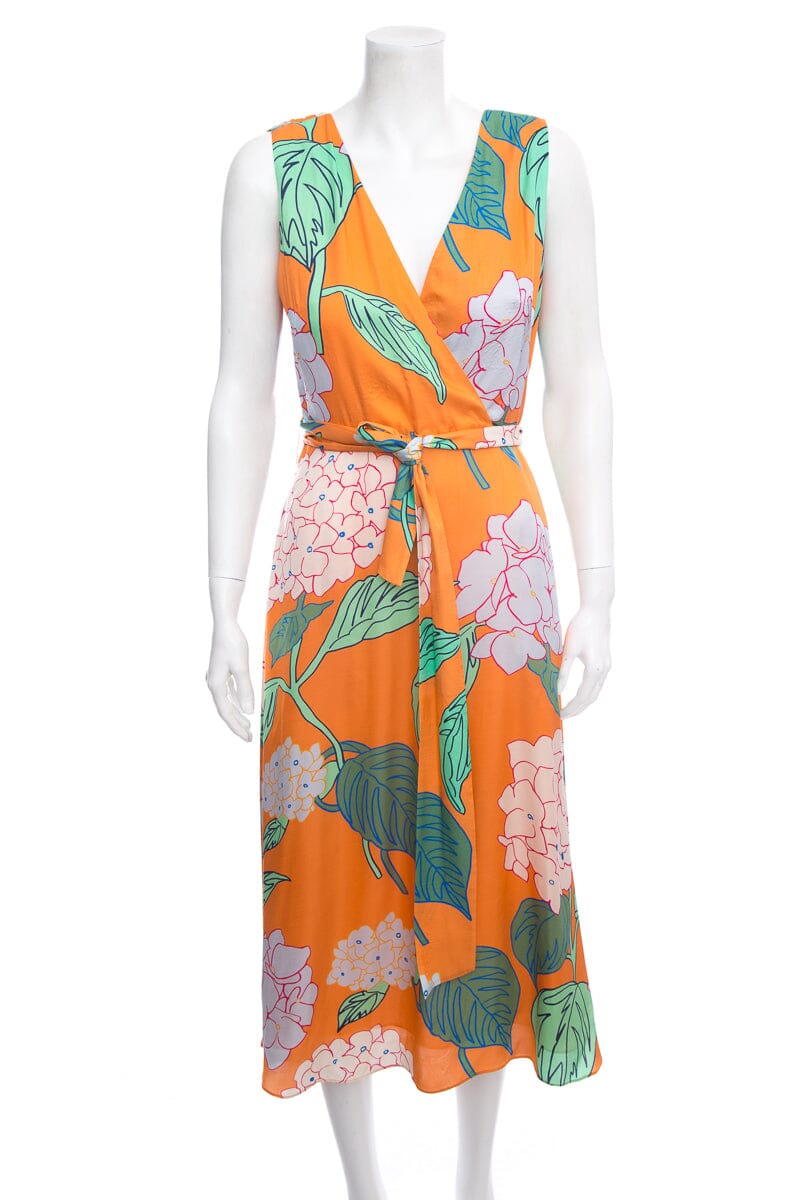 Lafayette 148 Orange Floral Print Dress. This item is in good condition; some rippling in fabric.