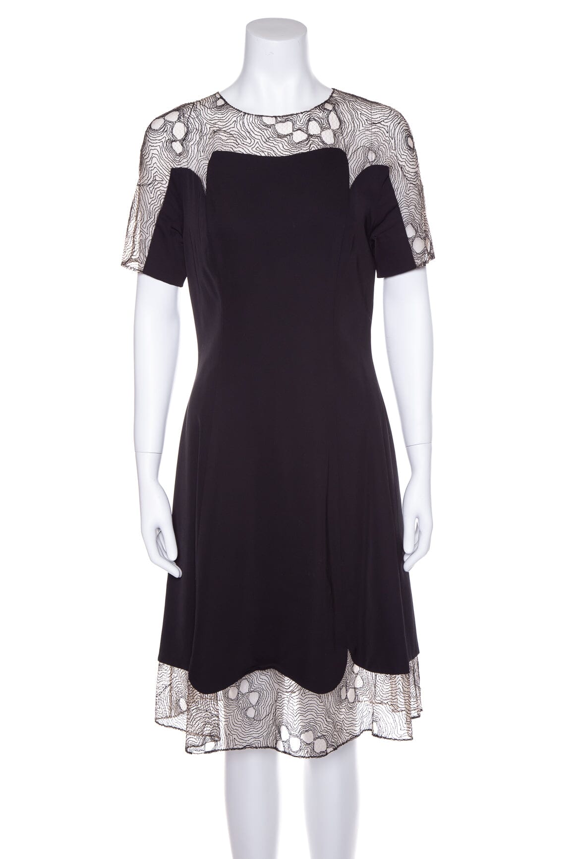 Lela Rose Black Short Sleeve Dress with Sheer Lace Detail. This item is in very good condition.