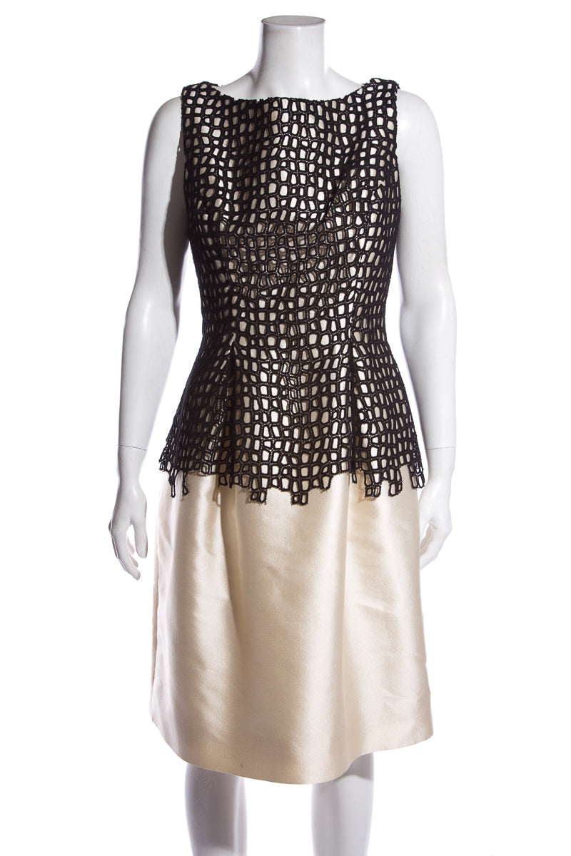 Lela Rose Cream and Black Sleeveless Dress w/ concealed zipper at back. This item is in good condition.