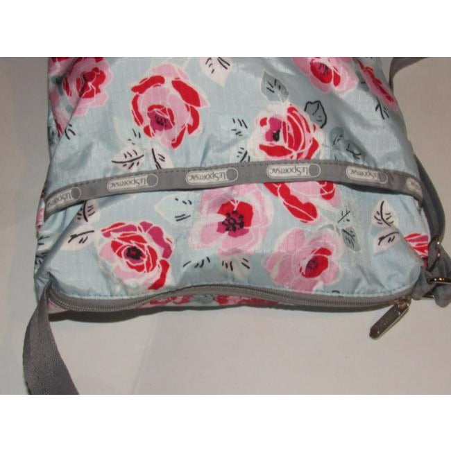 Lesportsac Grey Blue Red And Pink Floral Print Nylon Cross Body Bag