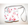 It is a cross body or shoulder purse, which ever you prefer with interior and exterior pockets! It is a square shape with a top zip and chrome hardware. The body is made of grey, blue, red, and pink floral print nylon. This is a fabulous purse to use everyday or when you travel!