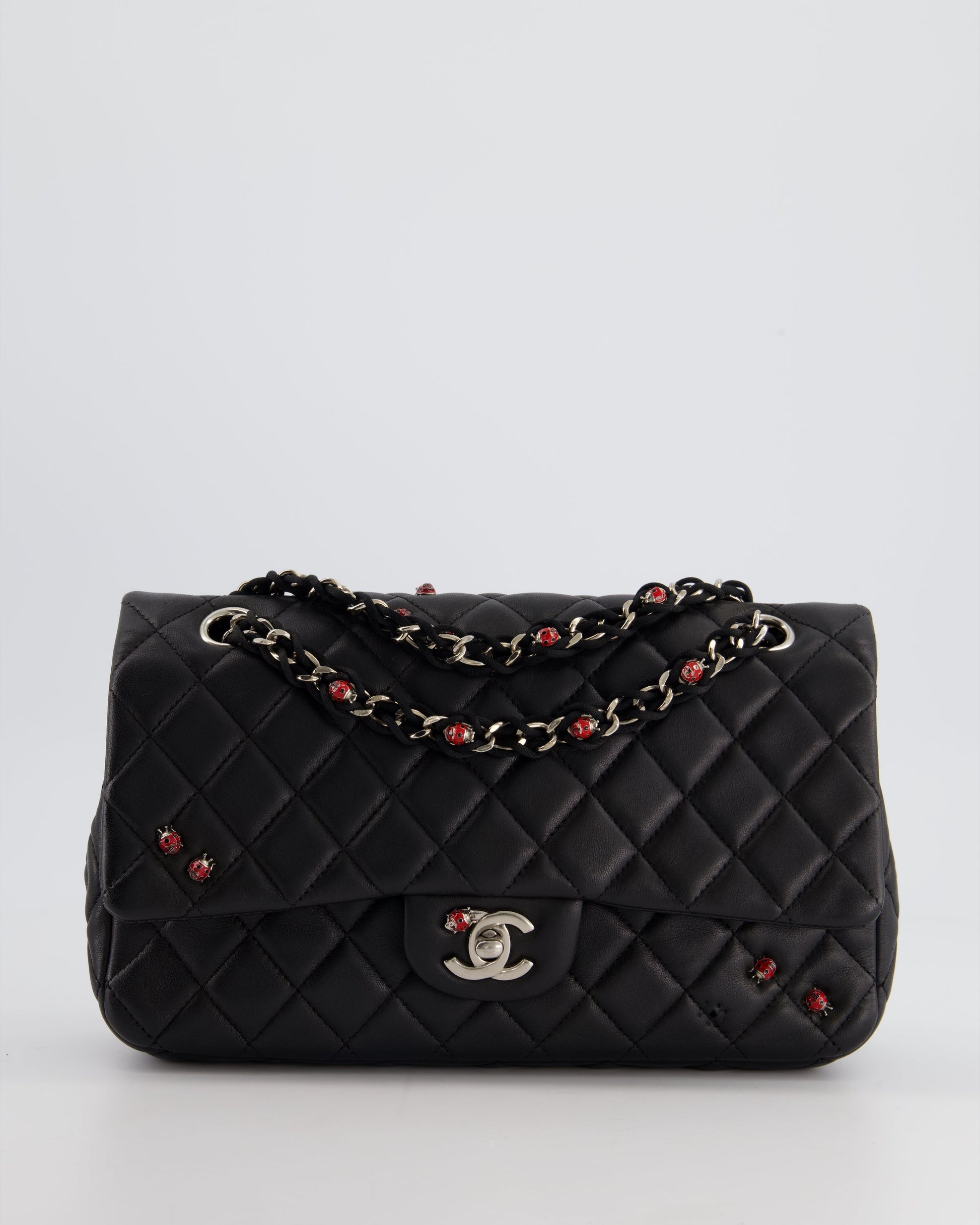 *LIMITED EDITION* Chanel Black Single Flap Bag with Ladybird Embellishment in Lambskin with Silver Hardware