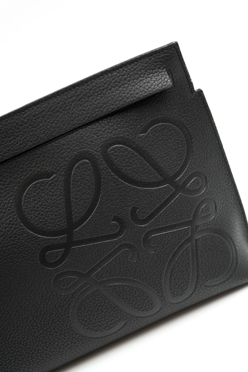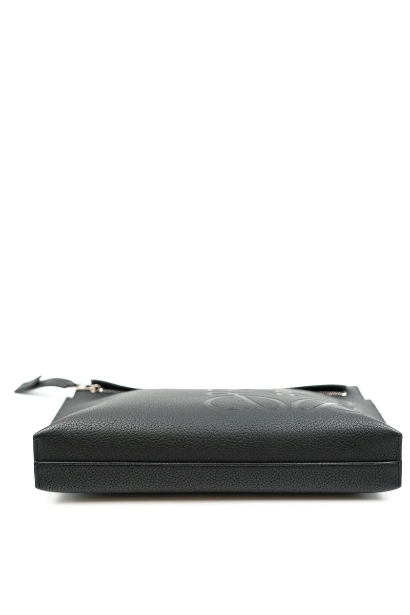 Loewe black grained leather logo clutch