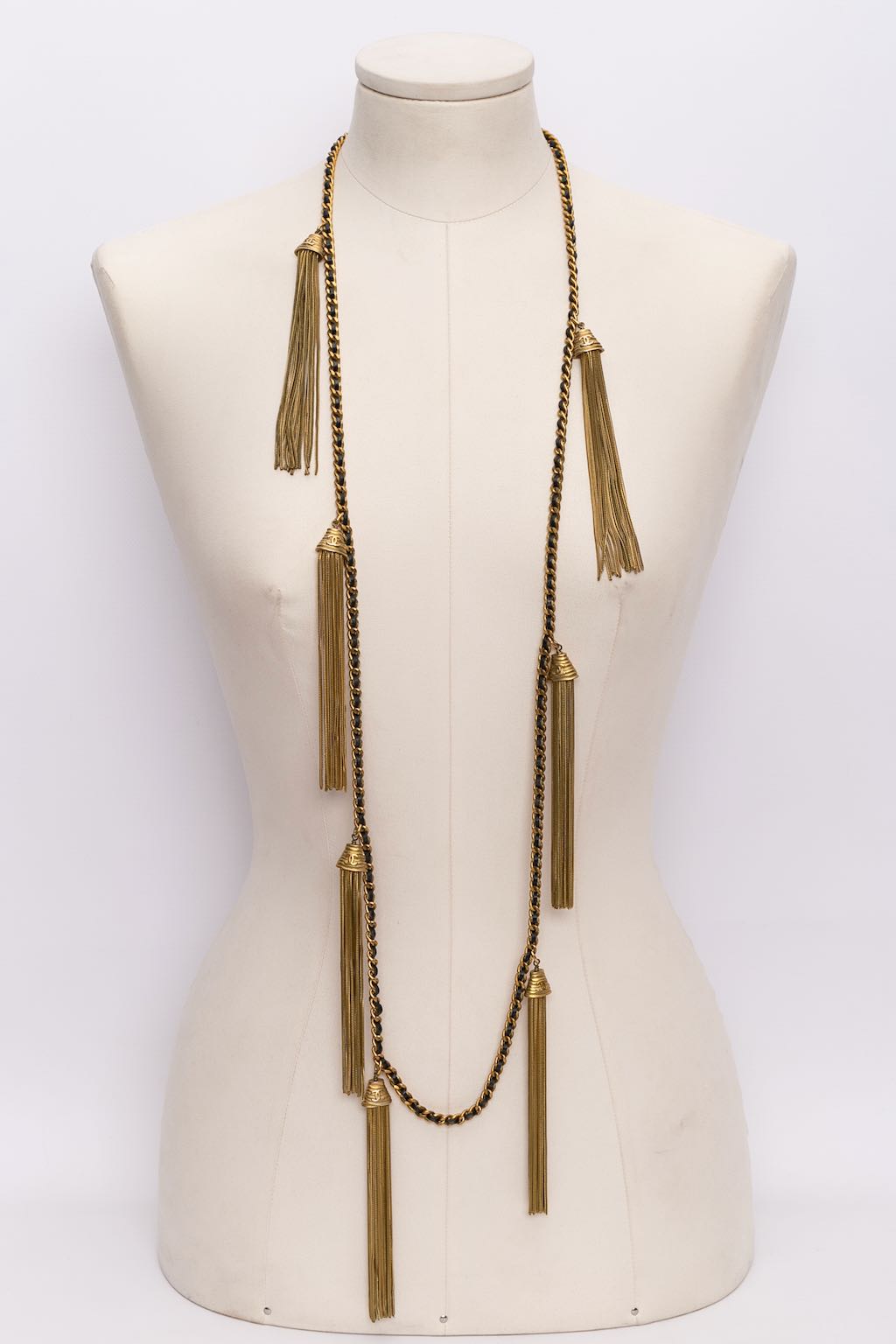 Note: Our Items are totally New High quality Brand Inspired Refurbished. Please make sure you are well aware of it before buying any of the Item. T&C's Apply in case of refunds.Please send us message on below chat to confirm availability. We will send the Refurbished Model in case you place an order with us. Enjoy Shopping.Always Send Us message to confirm availability before buying, In case of refund the transaction fee remains non refundable.�Thank�you. Long collier compos� d'une chaine en m�tal dor� entrelac�e de cuir noir et agr�ment�e de pompons. Collection Automne - Hiver 1994.