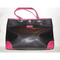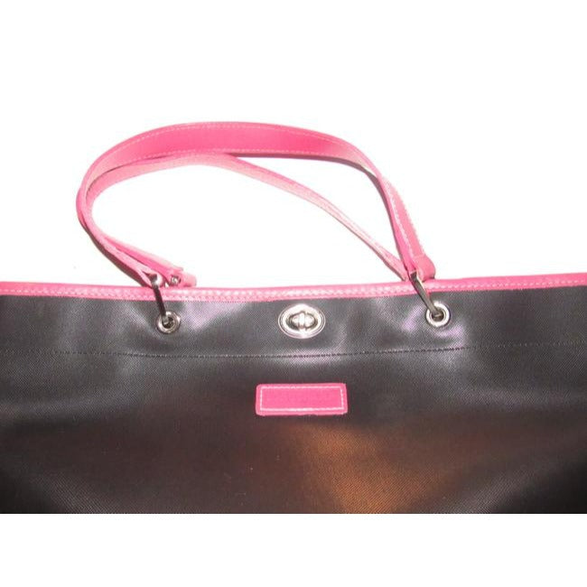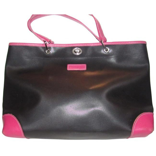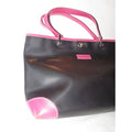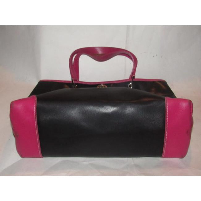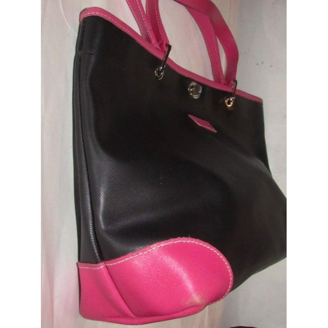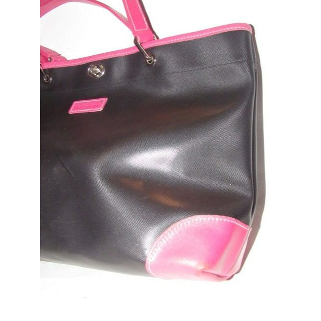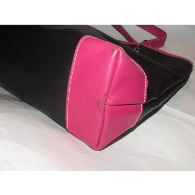 Longchamp Black Heavy Canvas And Hot Pink Leather Tote