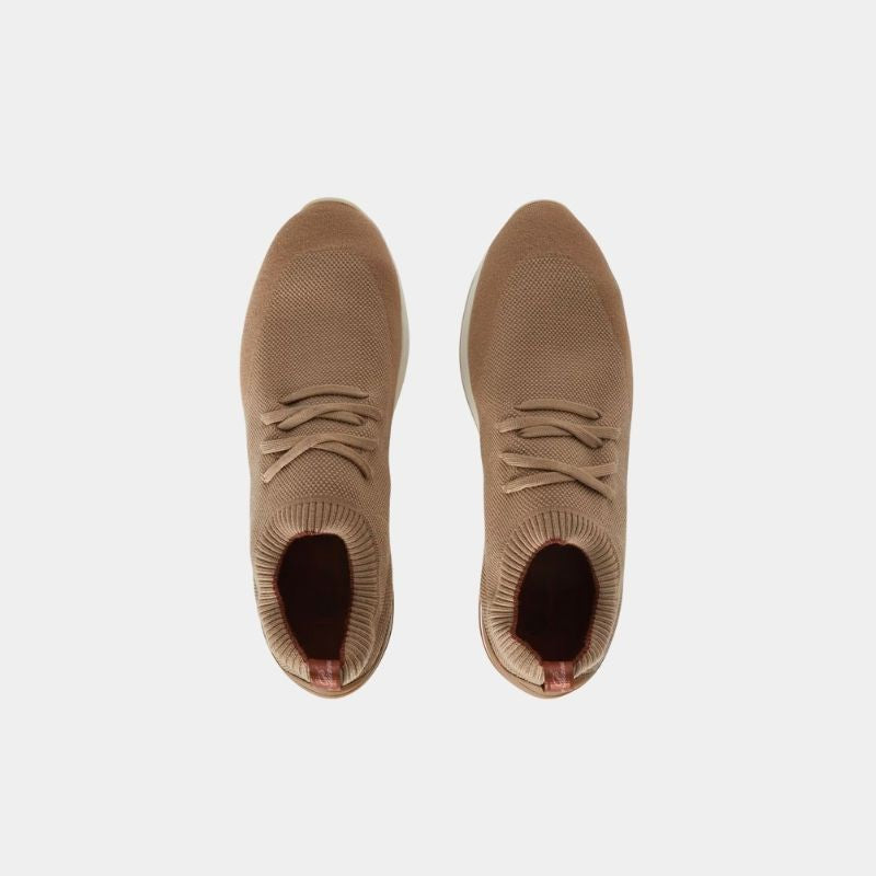 Loro Piana is synonymous with Italian craftsmanship, and the 360 Flexy Walk Sneaker is no exception. The upper is crafted on a loom like a sweater, ensuring a seamless fit and superior comfort. A ribbed elastic with Kummel colored edging provides a refined touch, while the white sole with a Kummel-colored tread enhances traction and durability. The sneaker is finished with a Kummel colored rear loop featuring the Loro Piana logo, tonal calfskin trim, and a luxurious nappa calfskin insole, elevating its sophisticated aesthetic.