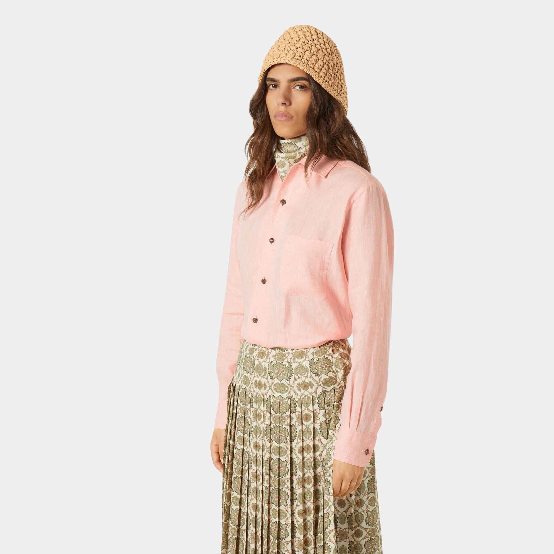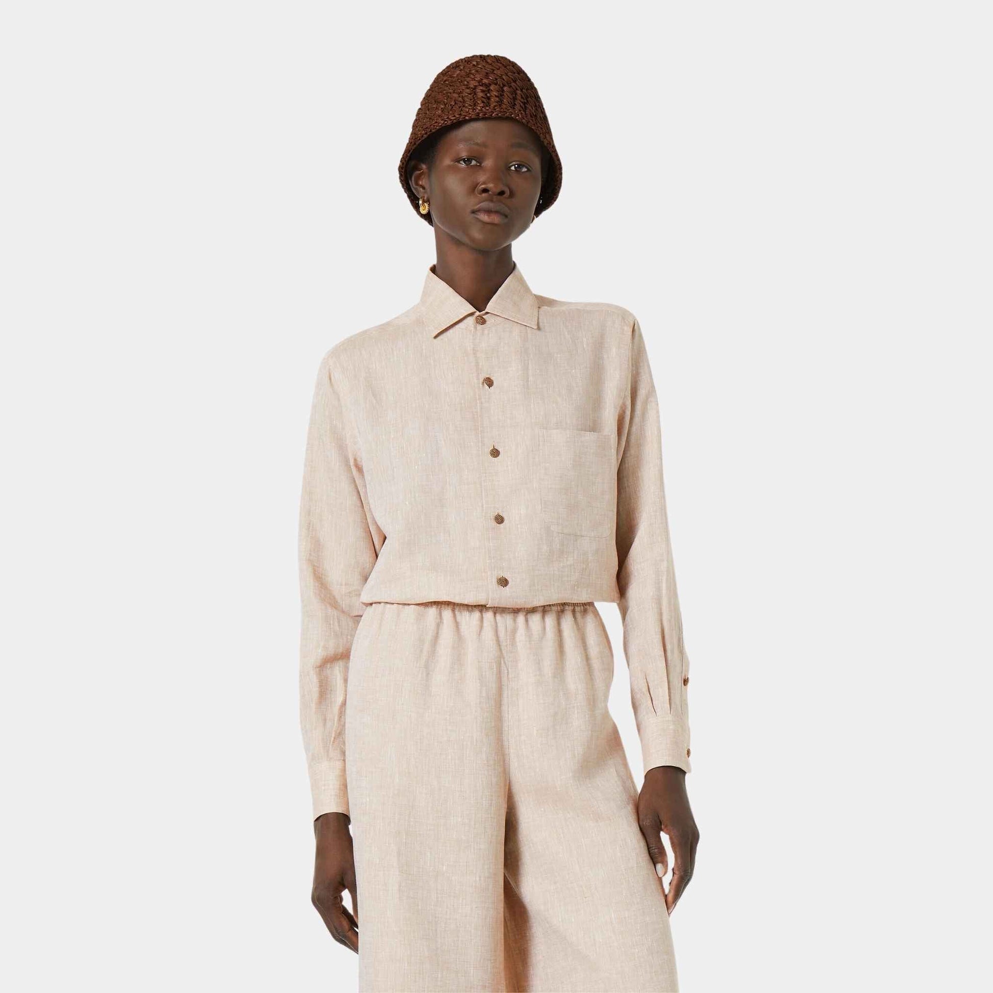 The Loro Piana André Shirt is a sophisticated take on classic tailoring, blending masculine structure with feminine elegance. Crafted from 100% premium linen, it offers breathability and lightweight comfort, making it an essential wardrobe piece for warm-weather styling.