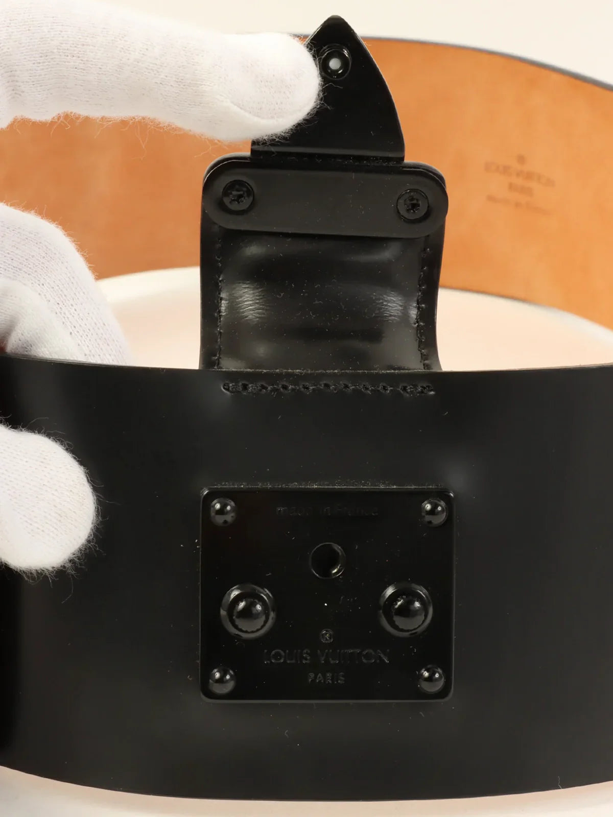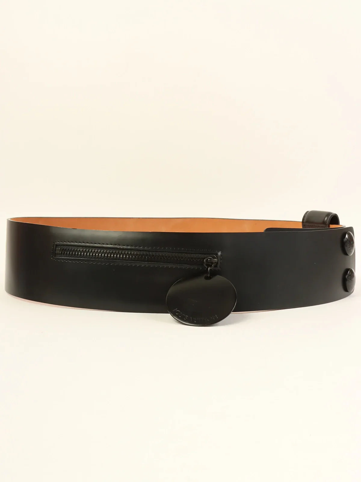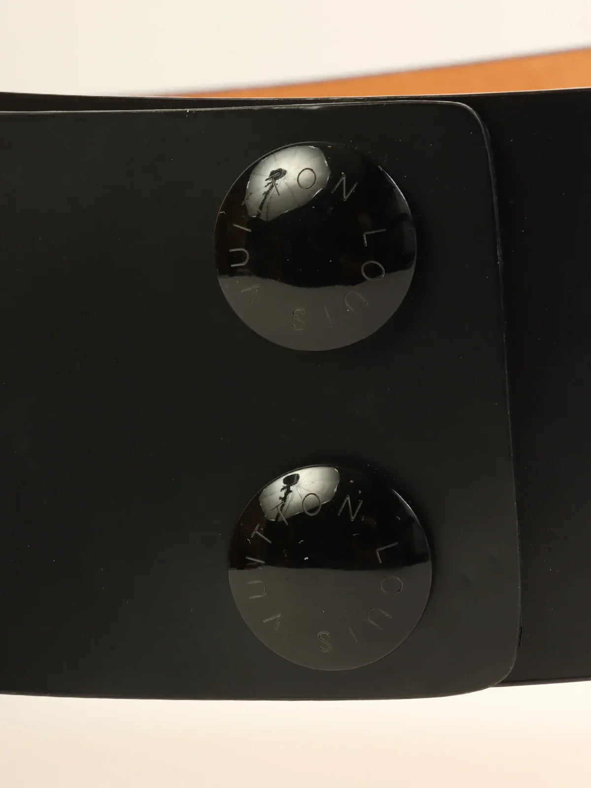 LOUIS VUITTON 2003 Made Logo Button Round Charm Belt Black