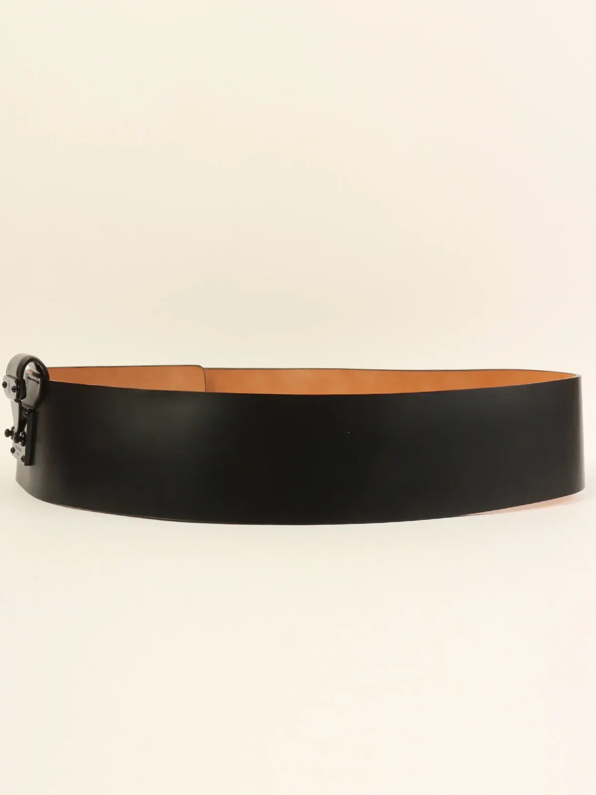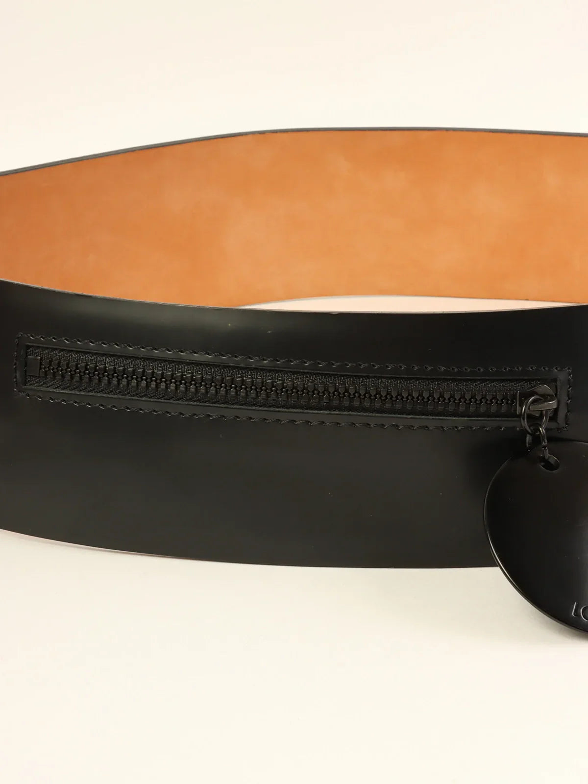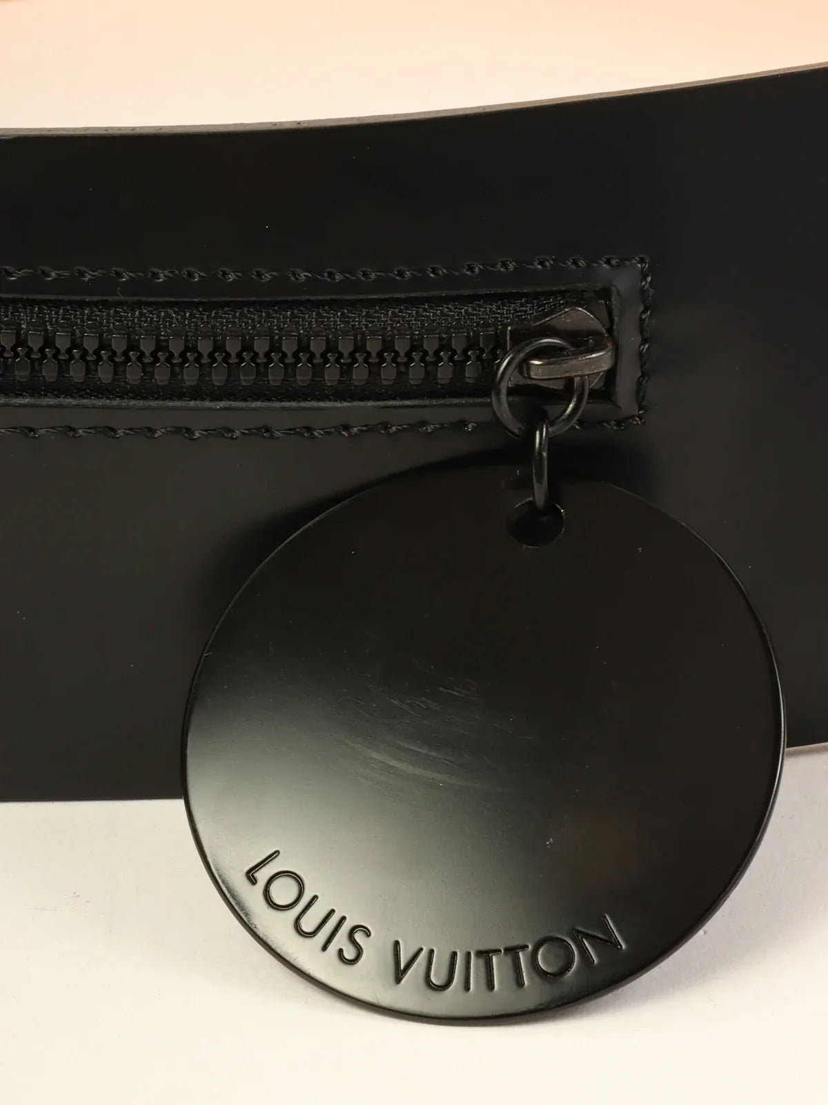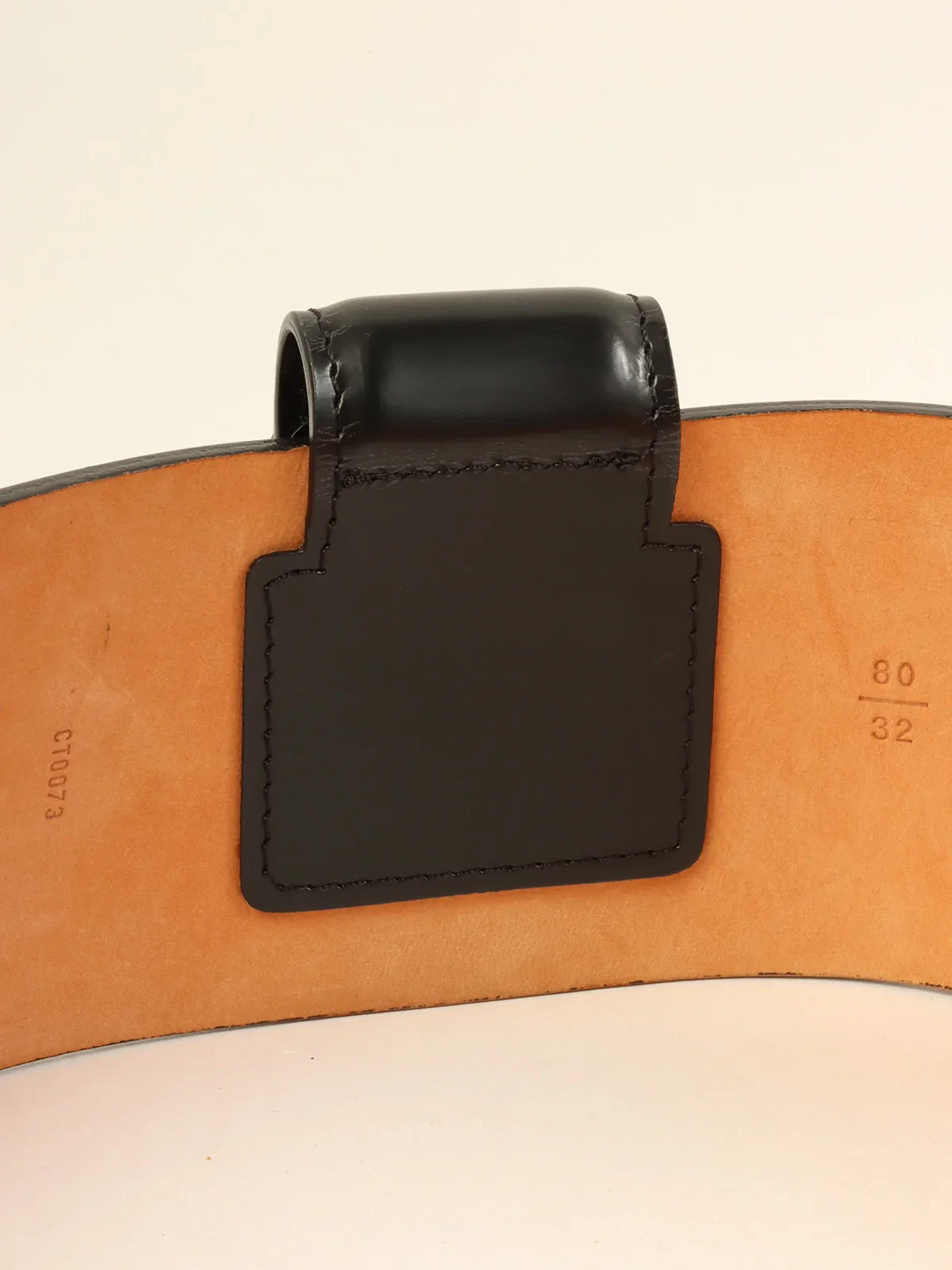 LOUIS VUITTON 2003 Made Logo Button Round Charm Belt Black