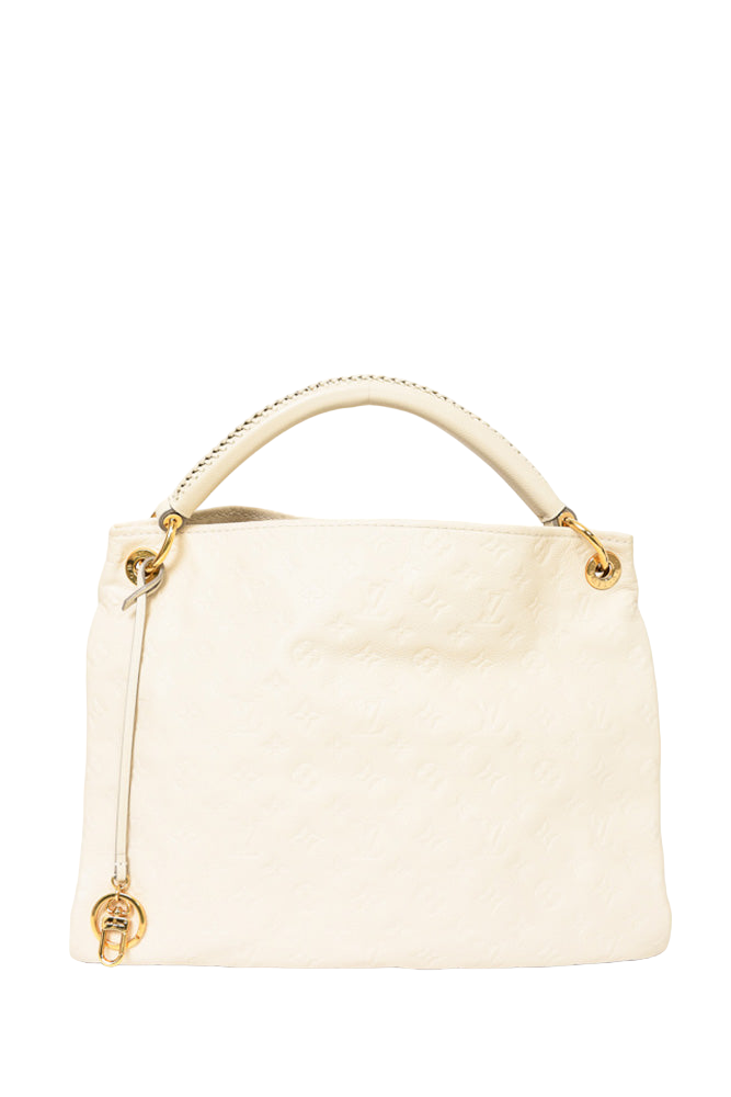 Louis Vuitton 2012 Cream Empreinte Leather Artsy MM Hobo Bag. Single top handle. Striped interior lining. 6 interior pockets; 5 slip and 1 with zip closure. Exterior charm detail. Gold-tone hardware. Tonal stitching.