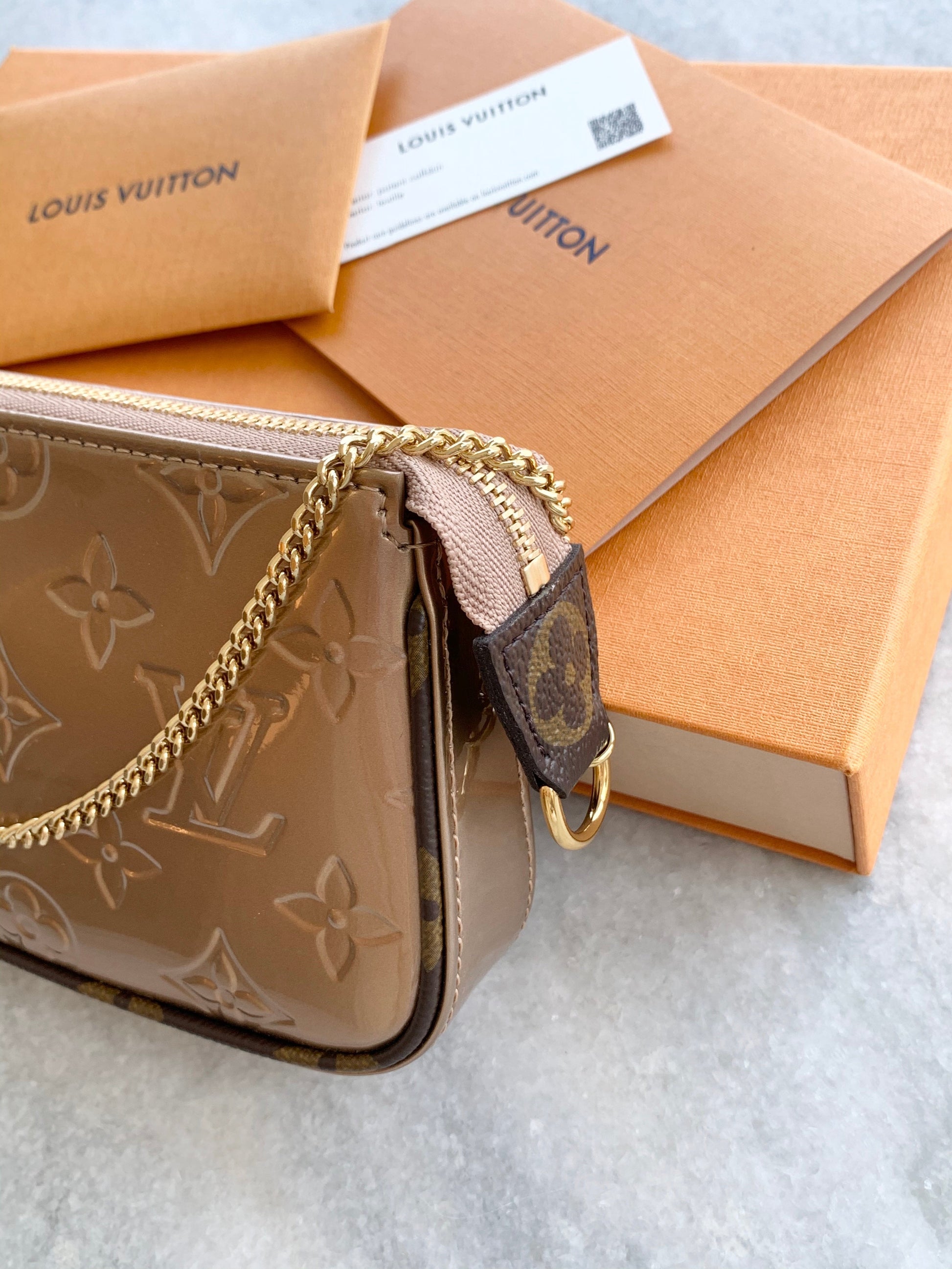 Louis Vuitton 2022 Mini Pochette Accessories Monogram Vernis Leather Chain Bag