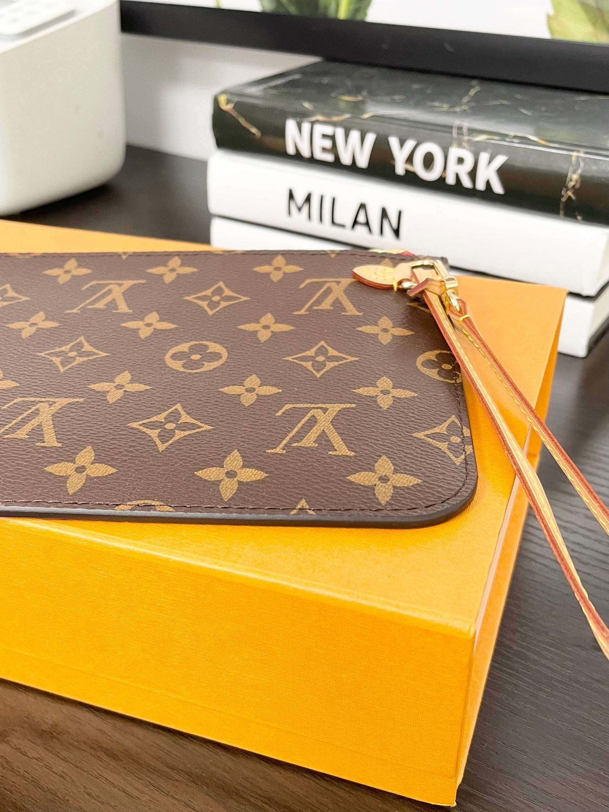 LOUIS VUITTON 2022 Monogram Neverfull MM Pochette Wristlet Pouch in Pivoine Pink