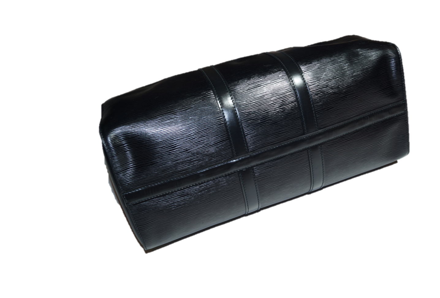 Vintage 45 Keepall rejsetaske i sort Epi læder fra Louis Vuitton med nogle brugstegn/patina. Tasken har nogle få slidtager i form af små farveafskrabninger på sider og hjørner. Lås uden nøgle og navneskilt medfølger.