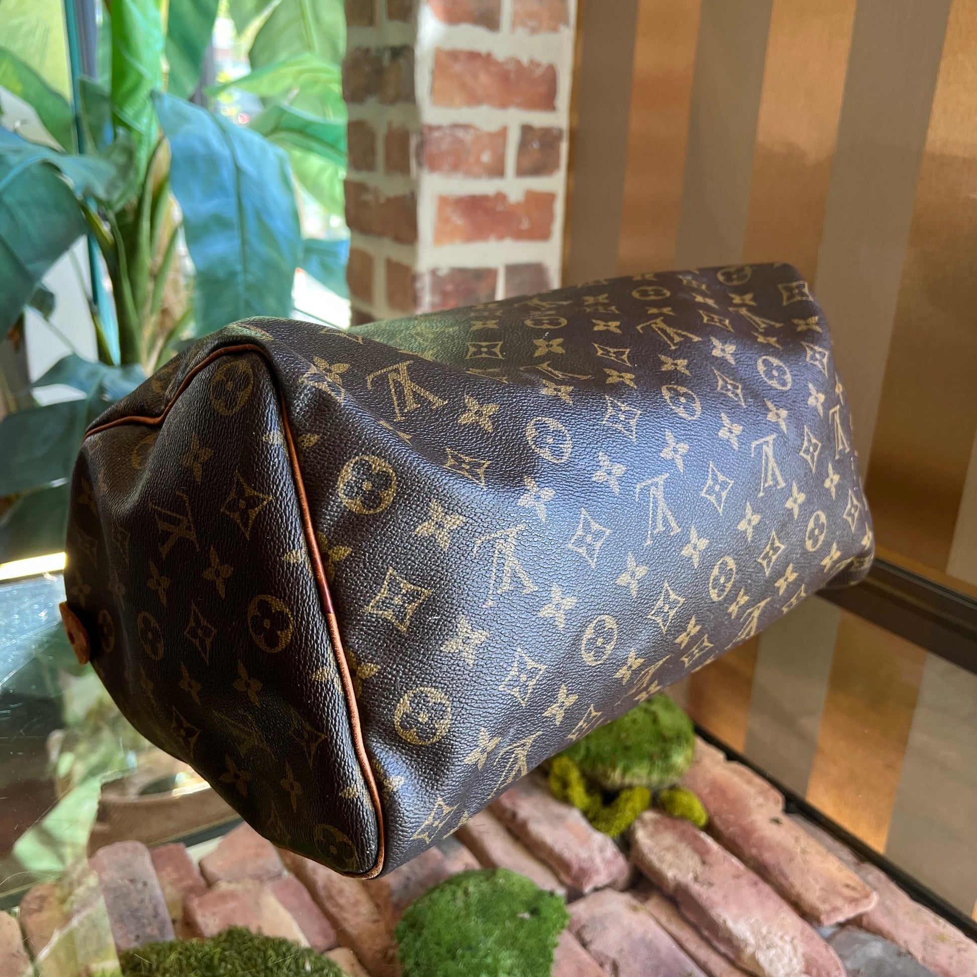 The Louis Vuitton Speedy 35 in brown monogram canvas is a classic and versatile satchel. Its spacious interior and iconic design make it the perfect blend of elegance and practicality. B- Good Overall Condition