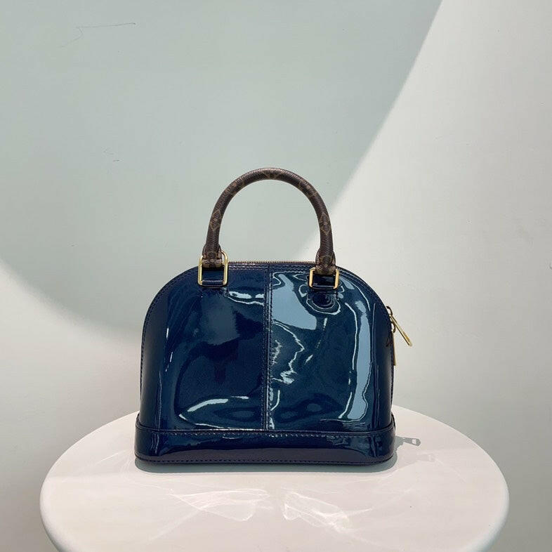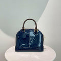 Louis Vuitton Alma Bag in Patent Navy Blue with Monogram Handles and Strap - Medium Size