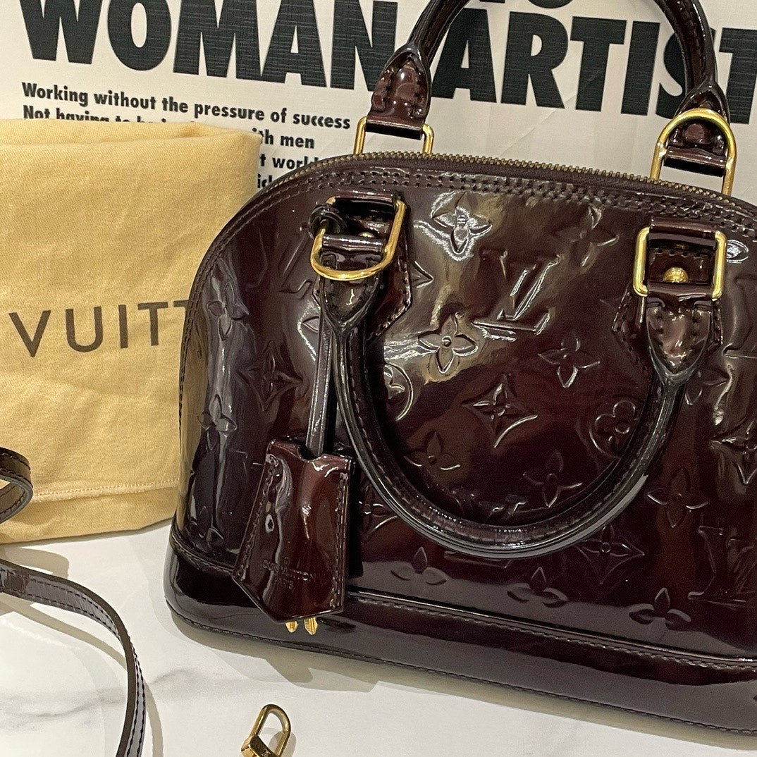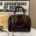 Elevate your style with this elegant Louis Vuitton Patent Leather Alma BB, perfect for any occasion. Crafted from high-quality patent leather, this Bag features the iconic LV monogram and gold-tone hardware, adding a touch of Luxury to your wardrobe. Its compact size and versatile burgundy color make it a must-have addition to your collection. Buy now and experience the timeless sophistication of Louis Vuitton.