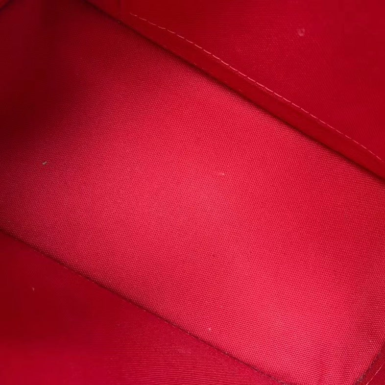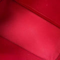 The red leather interior is spacious enough to hold your essentials, while the gold-tone hardware adds a touch of sophistication. The detachable strap offers versatile styling options, making it perfect for any occasion.