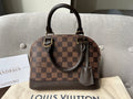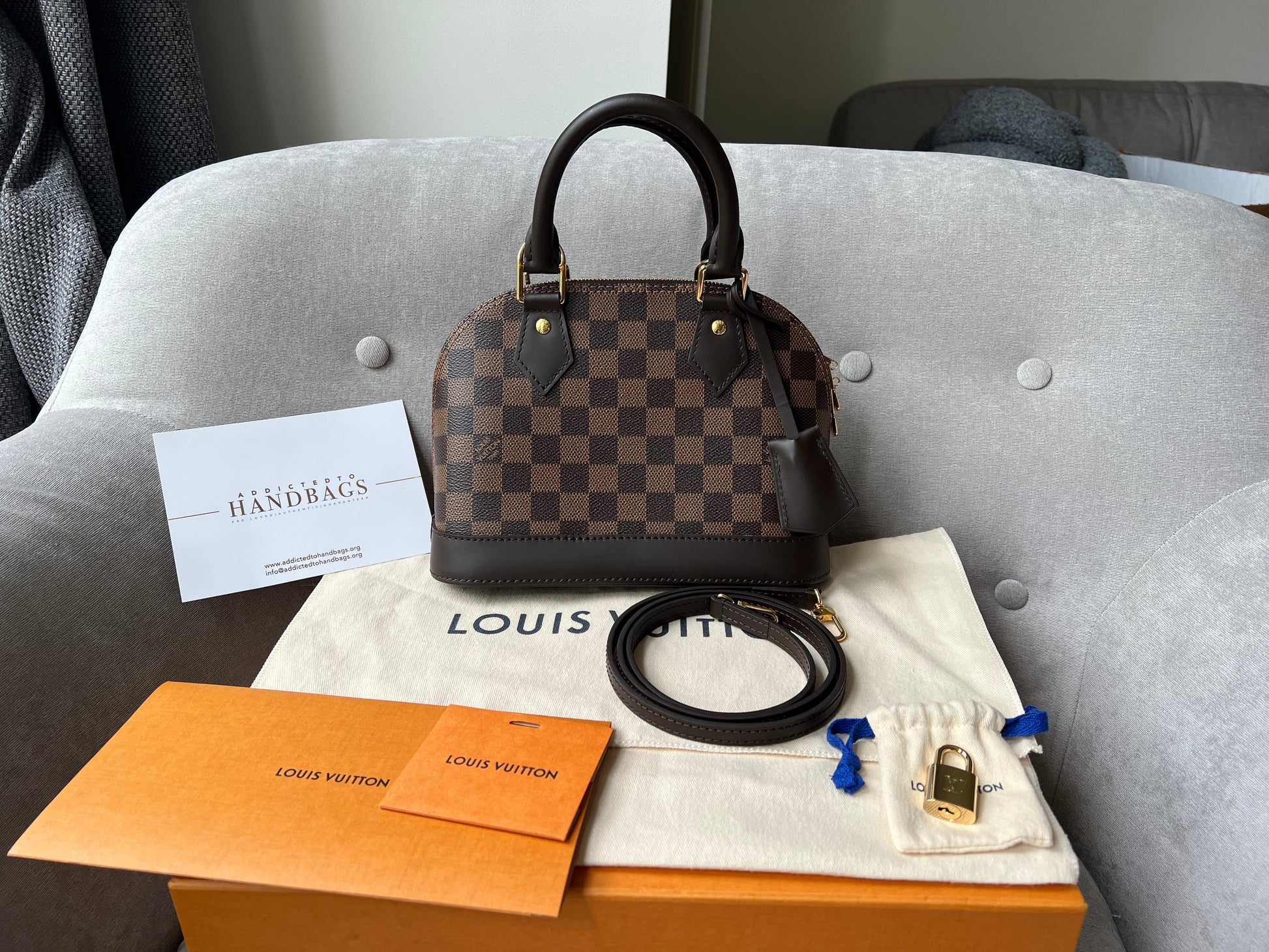 Louis Vuitton Alma BB Bag in Damier Ebene canvas with gold hardware. This style is timeless and elegant and remains one of Louis Vuitton's most popular styles. Often sold out online, this sought after style features padlock and keys contained within leather, twin Toron handles and removable leather strap. Perfect size for those who prefer smaller Bags for day use, the Alma BB can be carried in hand or carried over shoulder or cross body. Perfect Accessory for day to night wear.
